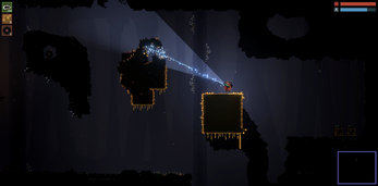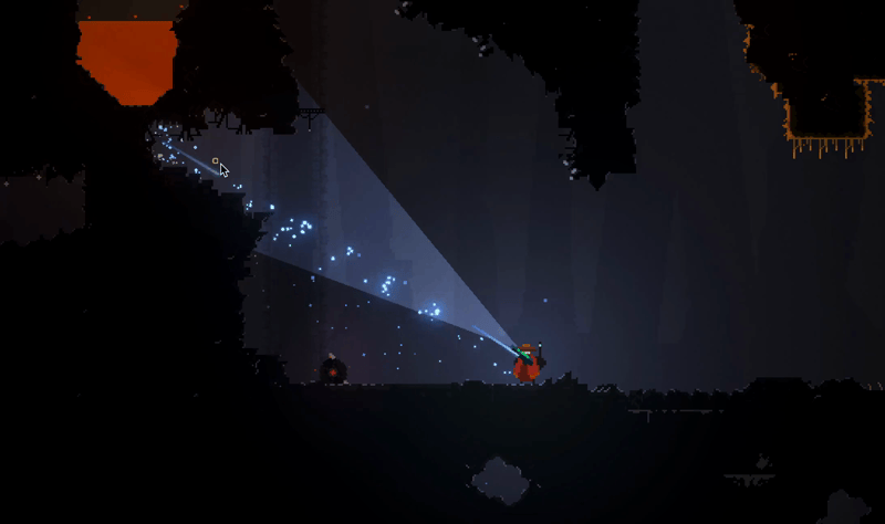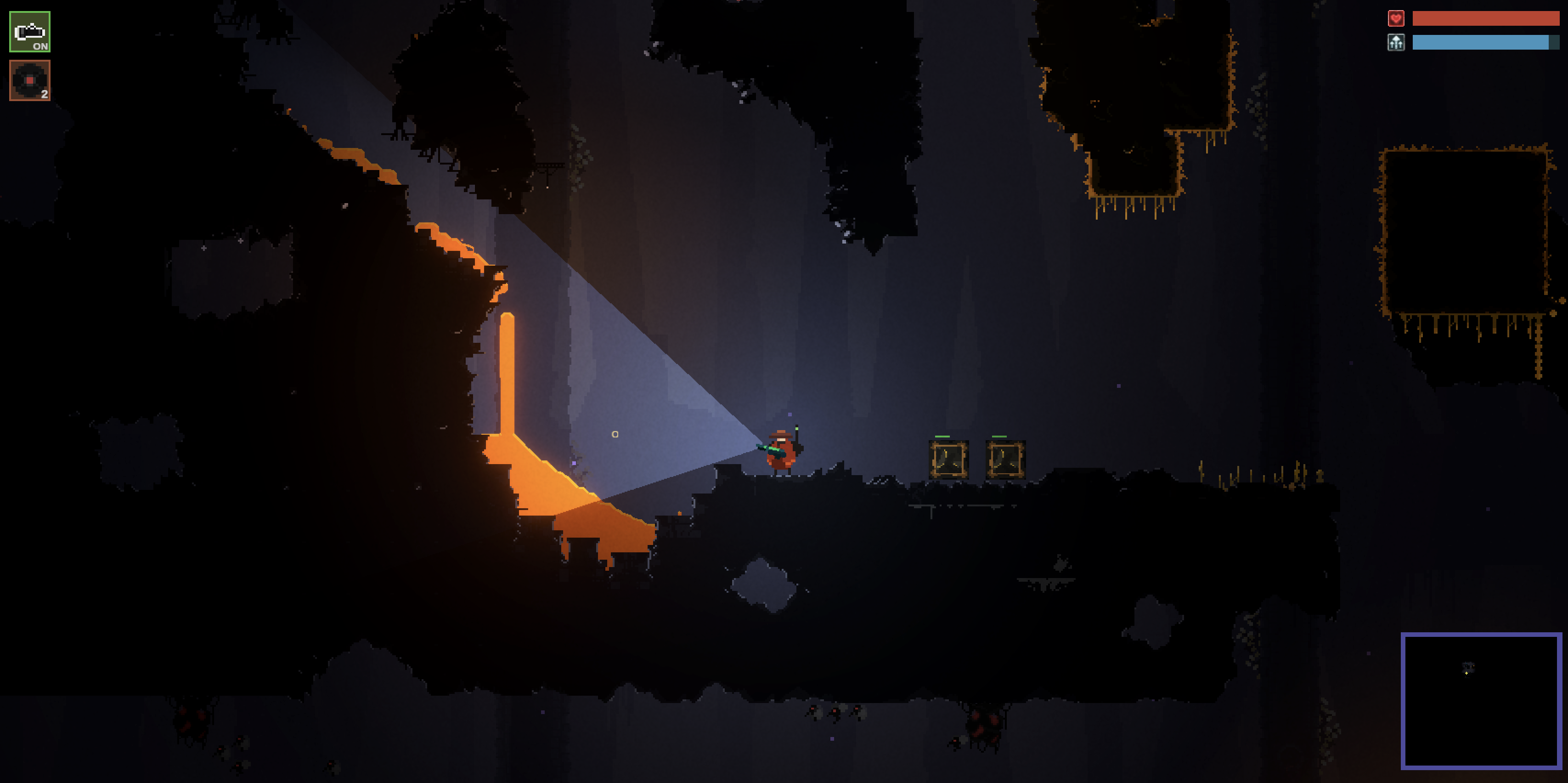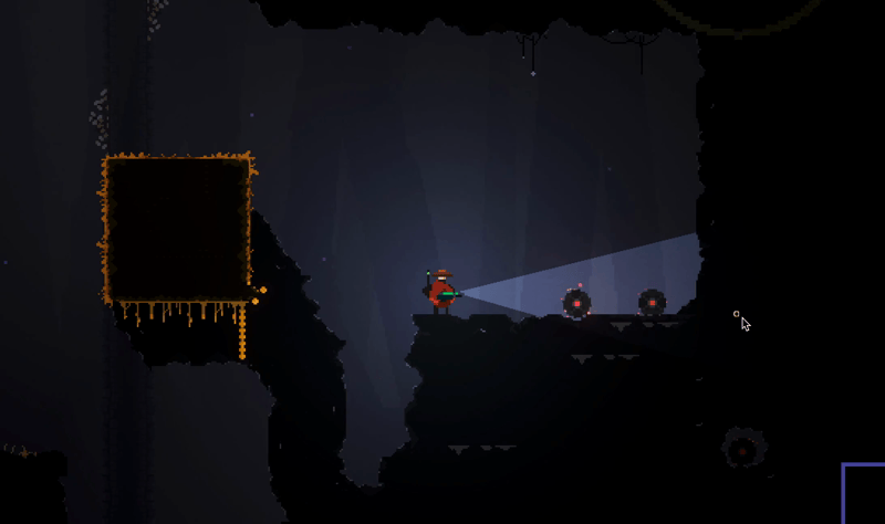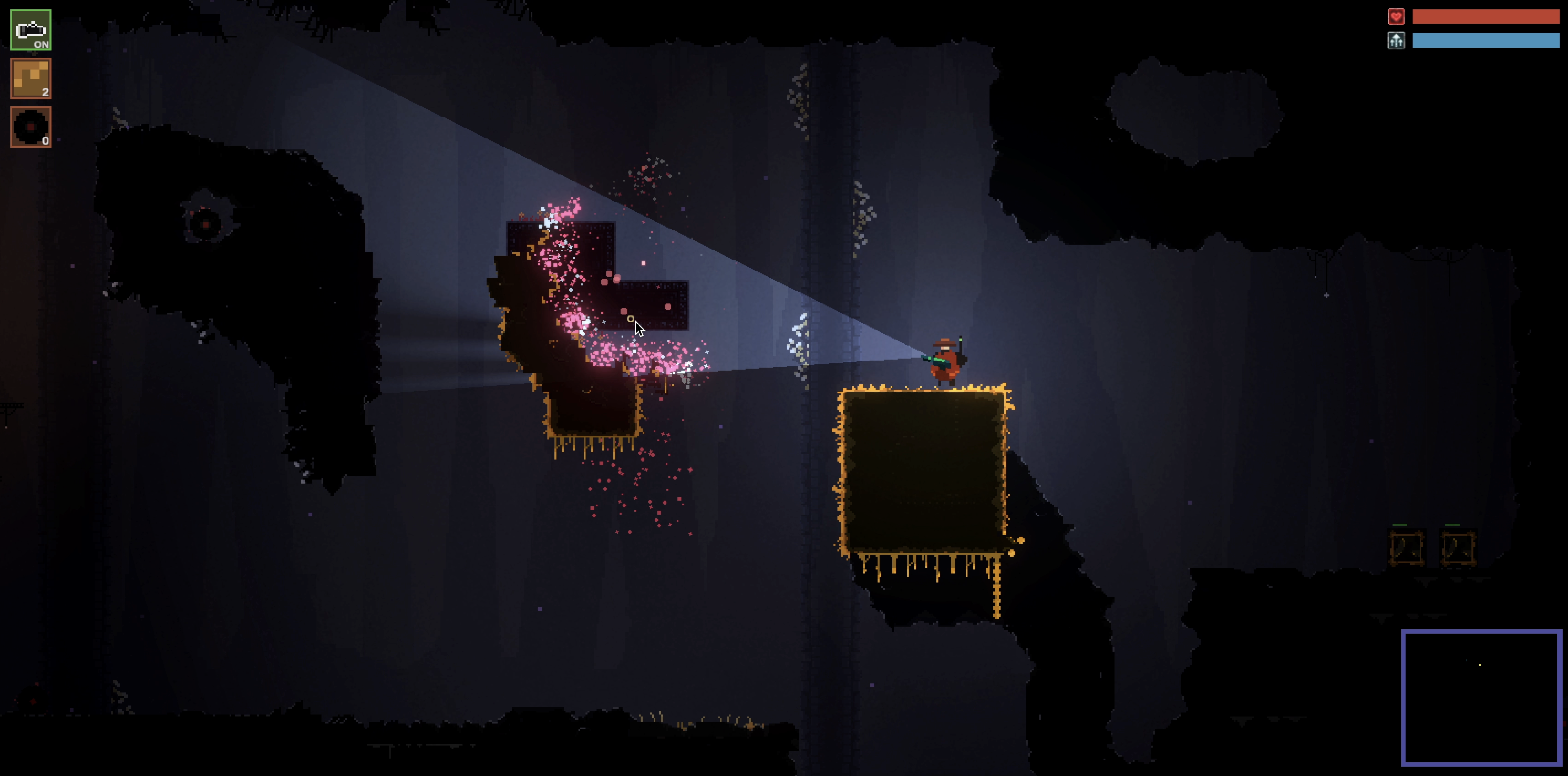 A 2D metroidvania platformer where you explore deep caves and the whole terrain is destructible. Use drones to fly around, bombs to destroy terrain faster, and create structures to protect yourself from enemies.