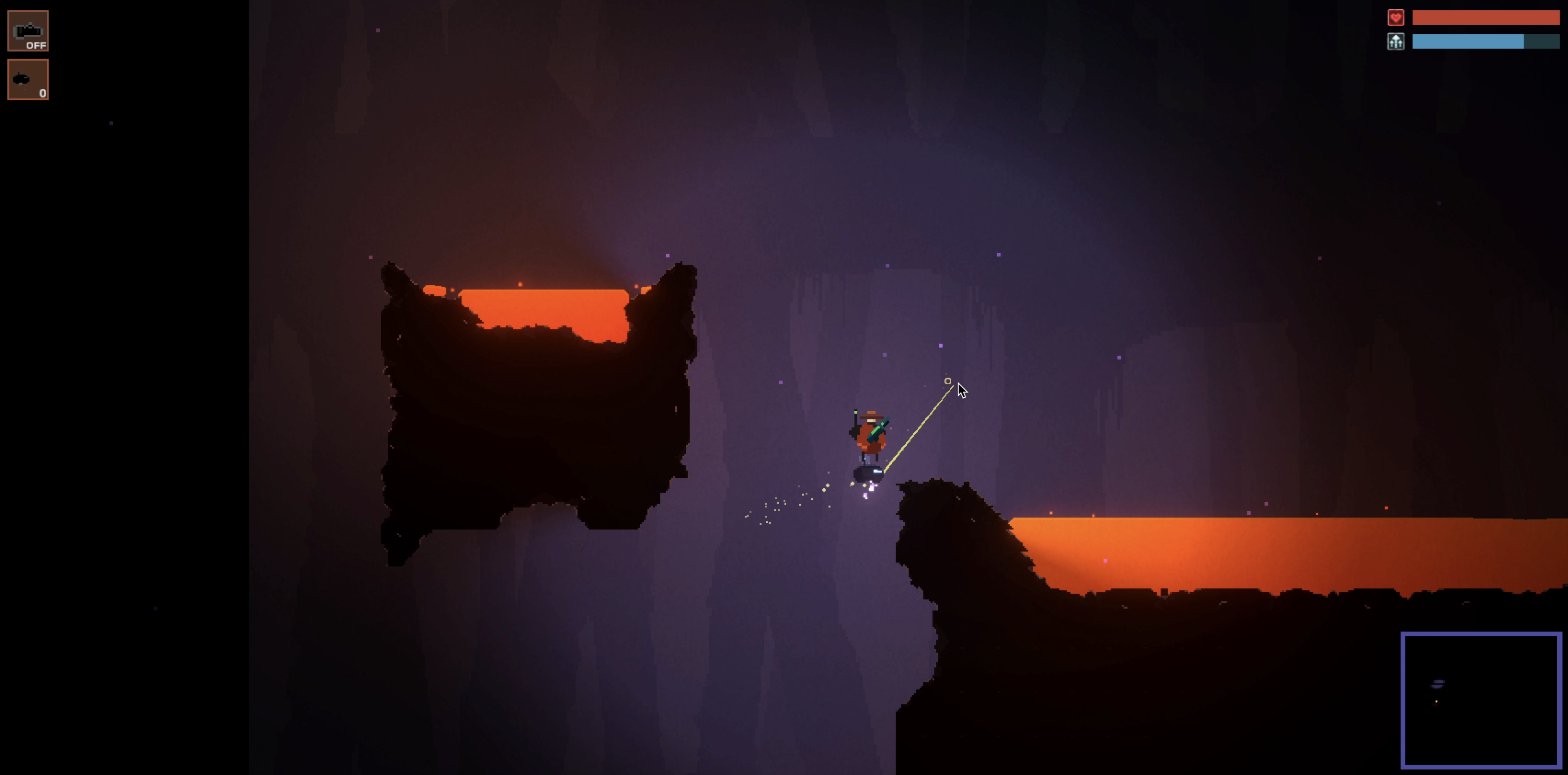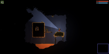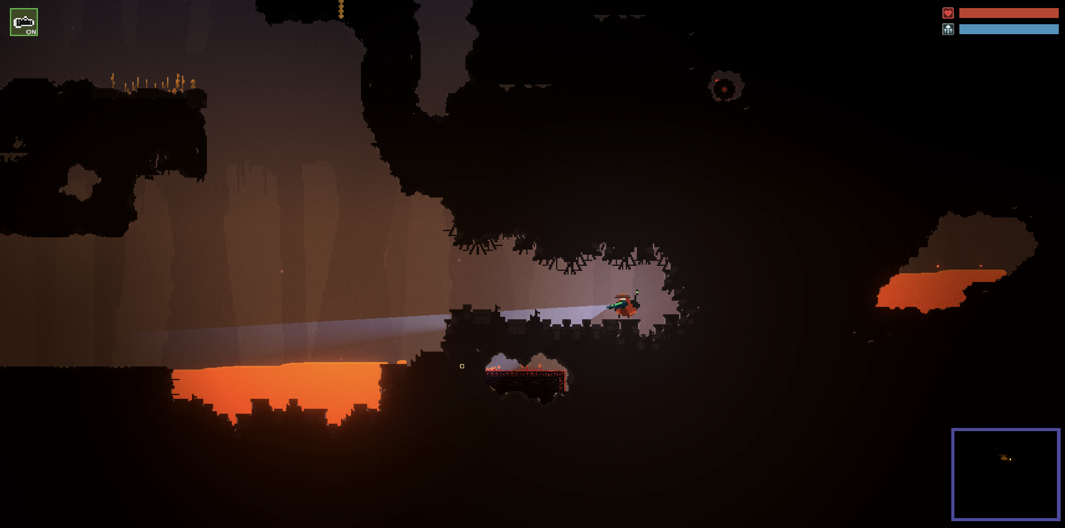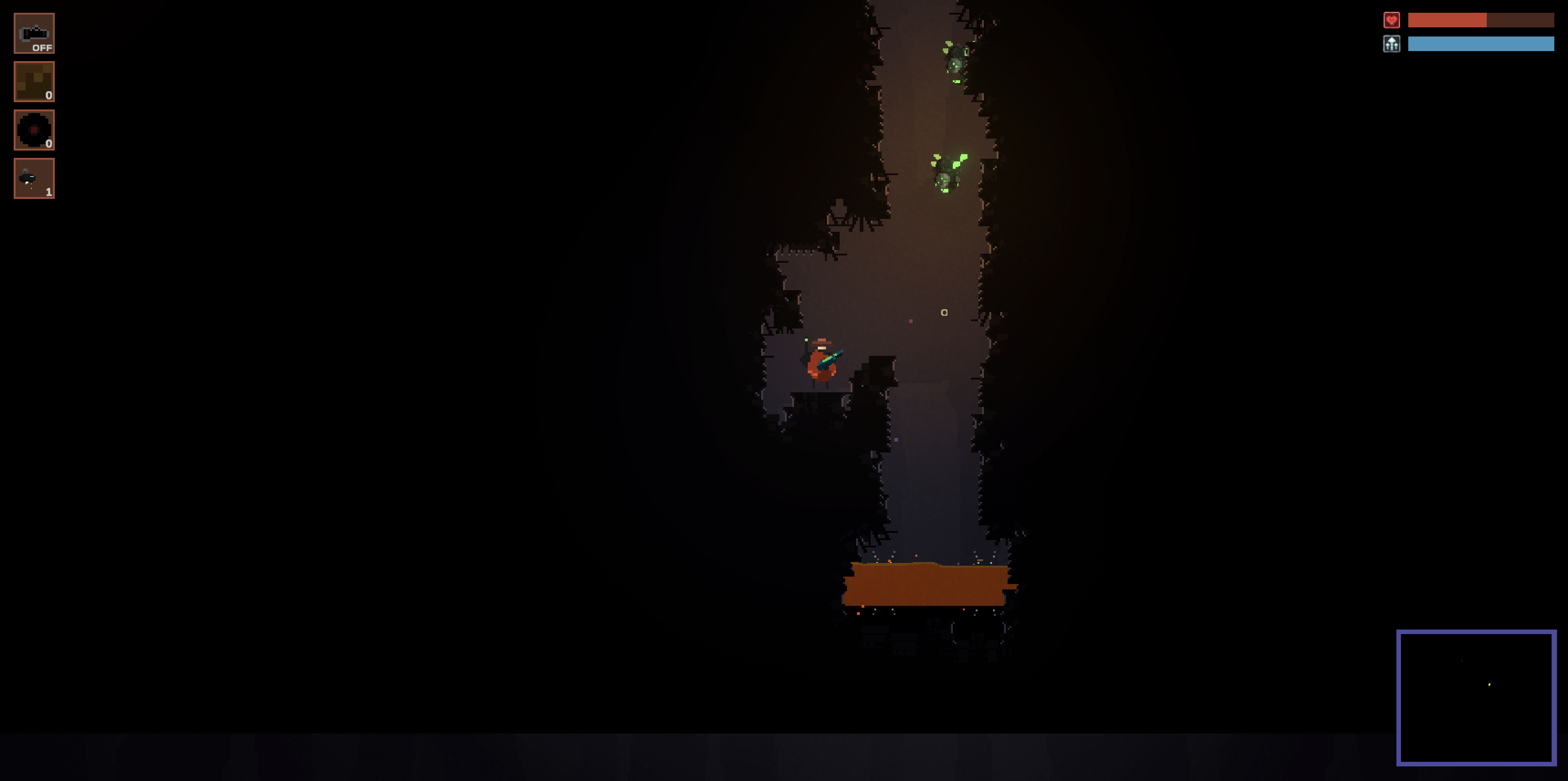 A 2D metroidvania platformer where you explore deep caves and the whole terrain is destructible. Use drones to fly around, bombs to destroy terrain faster, and create structures to protect yourself from enemies.